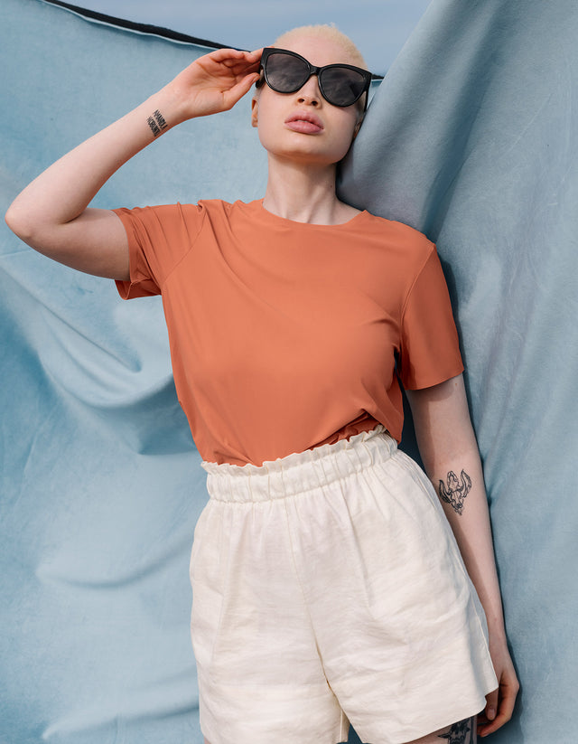 A high-stretch fabric, Technical Silk drapes like silk and is soft to the touch. It is OEKO-TEX® certified and manufactured in Italy at a mill that is 100% powered by renewable solar and biomass energy.