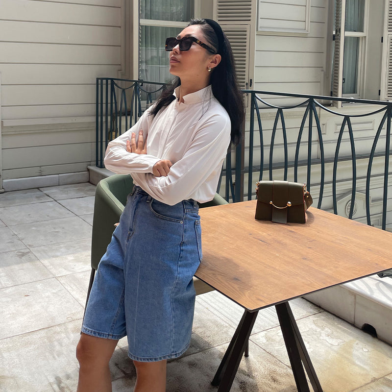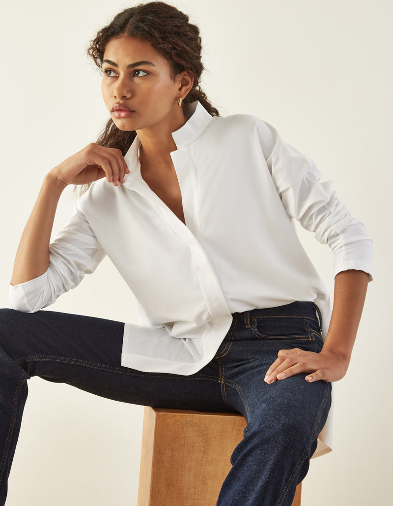 Kassidi is wearing the Something Borrowed Shirt in White.