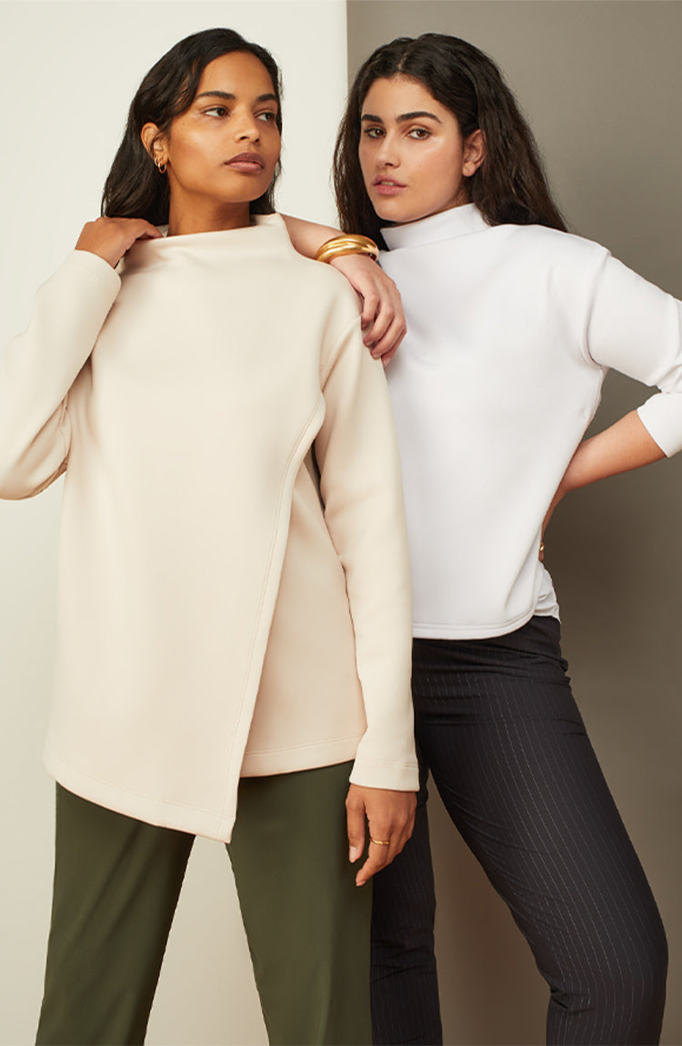 Using technologies like LYCRA or ROICA, our clothing comfortably accommodates size fluctuation from bloating or postpartum changes.