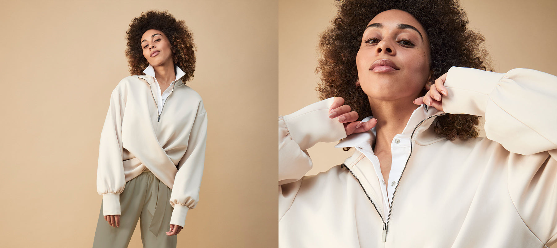 Using technologies like LYCRA or ROICA, our clothing comfortably accommodates size fluctuation from bloating or postpartum changes.