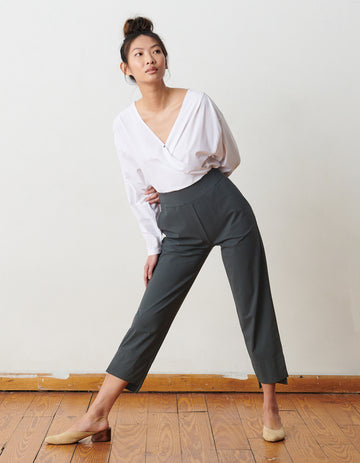Working hard has never looked so good. These high-rise, straight leg trousers feature substantial pockets and fall to an ankle length. This product runs large. Size down for a closer fit.