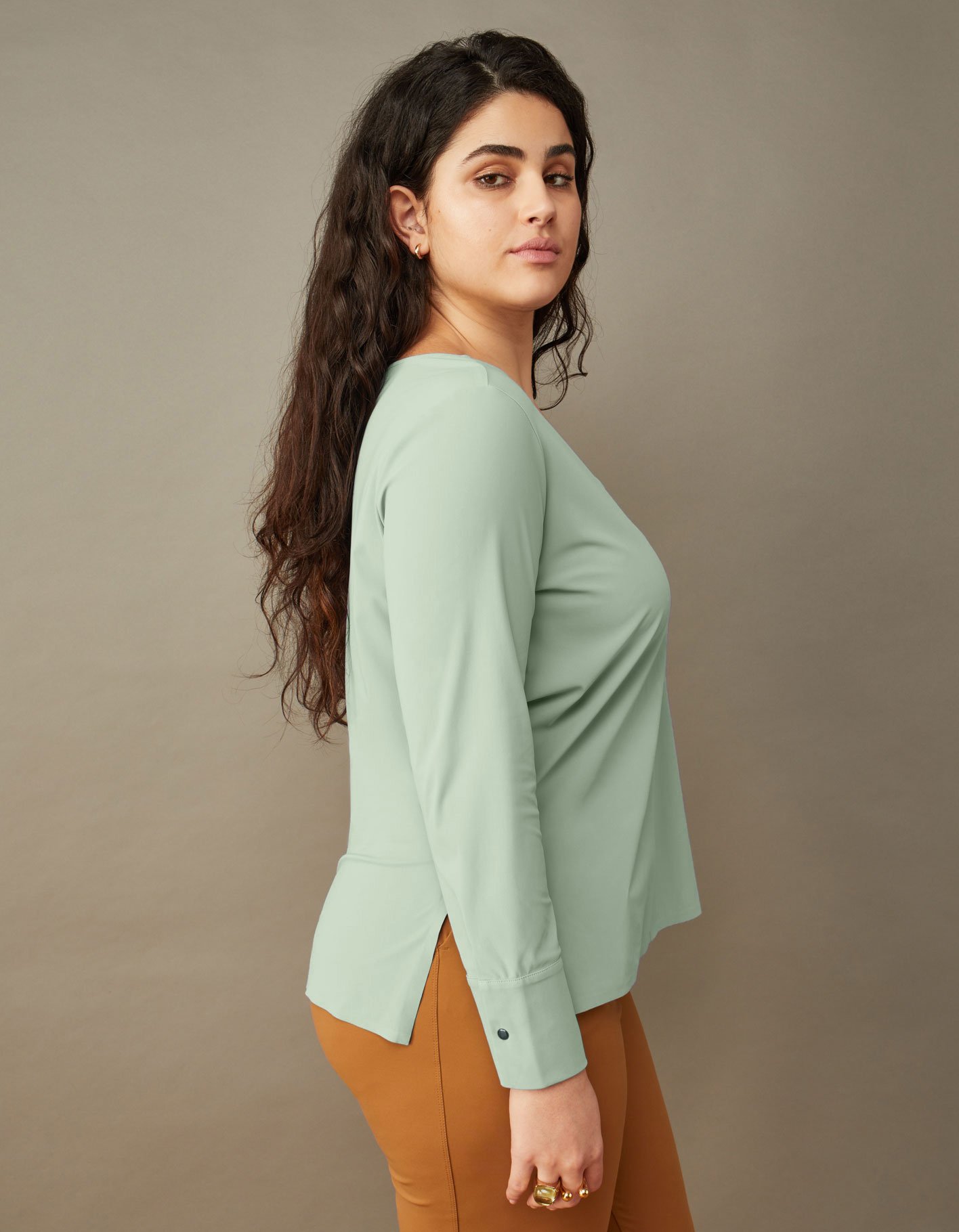 It's a best seller for a reason, the Something Tailored is the women's v-neck top of your dreams. The side slits make it easy to tuck into work pants, while the oversized cuffs can be rolled up for a more casual look.